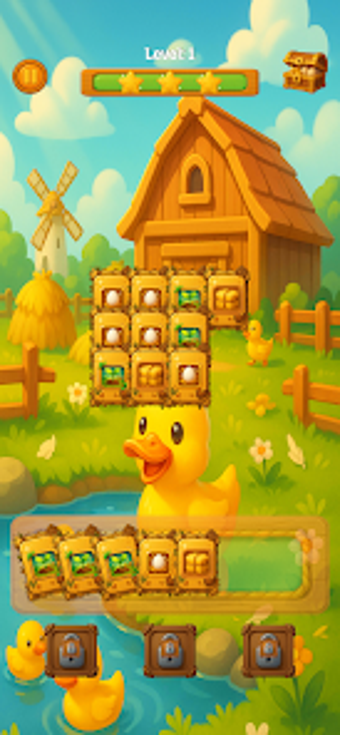 เกมปริศนา Duck Farm เป็นเกมจับคู่ที่น่ารื่นรมย์ซึ่งตั้งอยู่ในชนบทที่มีชีวิตชีวา ผู้เล่นมีส่วนร่วมในประสบการณ์ที่ผ่อนคลายโดยการจับคู่กระเบื้องที่เหมือนกันสามชิ้น เช่น ไข่ ฟาง หรือยอดอ่อนเพื่อล้างพวกมันออกจากกระดานและรับดาว เกมนี้กระตุ้นให้เกิดการคิดเชิงกลยุทธ์ เนื่องจากผู้เล่นต้องวางแผนการเคลื่อนไหวอย่างระมัดระวัง เนื่องจากถาดมีพื้นที่จำกัดสำหรับกระเบื้อง การจับคู่ที่สำเร็จจะนำไปสู่การเฉลิมฉลองที่มีความสุขโดยเพื่อนเป็ดที่น่ารัก เพิ่มประสบการณ์การเล่นเกม